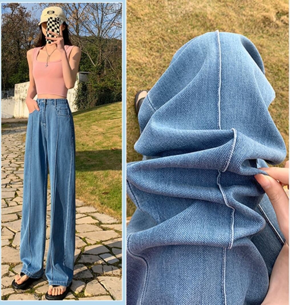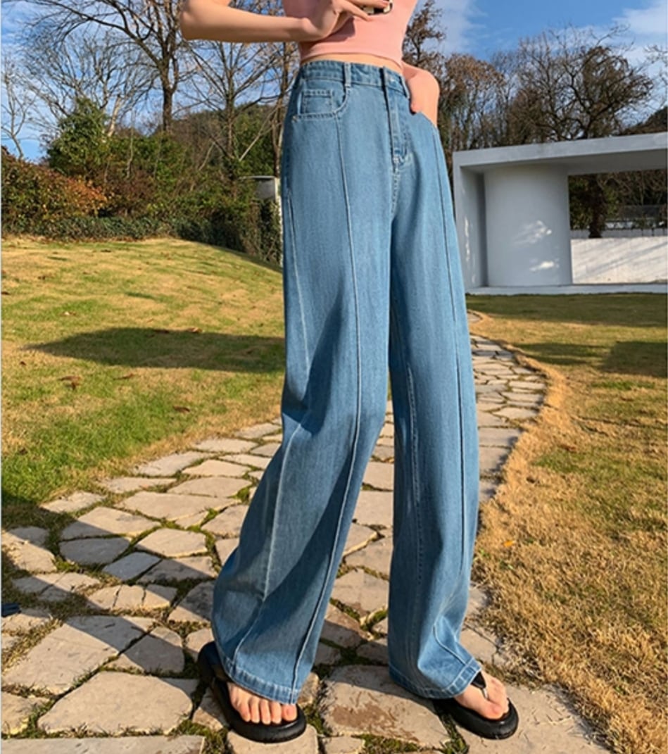 2025新作 レディース センタープレスデニム 冷感 ひんやり ハイウエスト ストレート ワイド