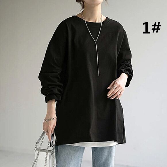 トップス 長袖シャツ Tシャツ ラウンドネック レディース tシャツ ゆるシルエット 無地Tシャツ コットン