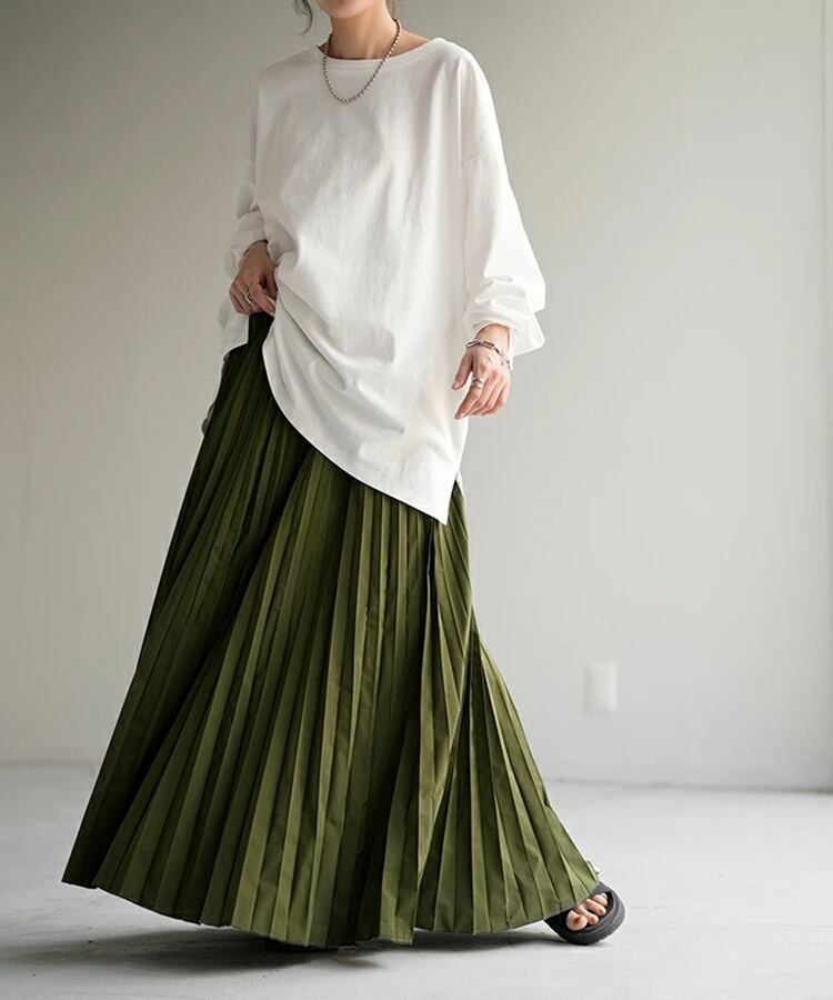 着まわしやすいシンプルなデザイン。ゆったり身幅で体型カバーも◎