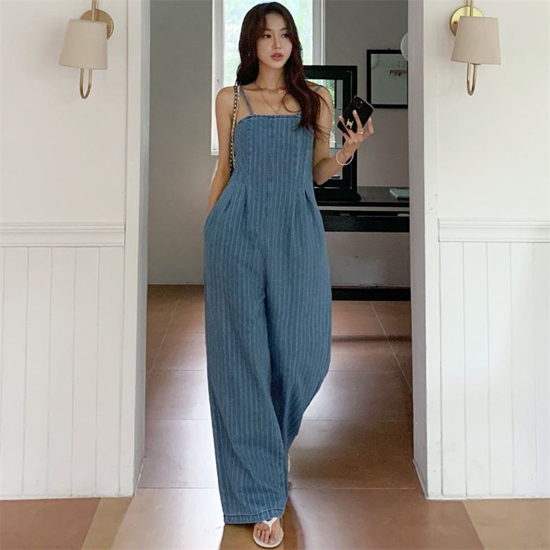 2025年INS 夏新作 韓国ファッション おしゃれ オーバーオール デニムズボン ロングパンツ