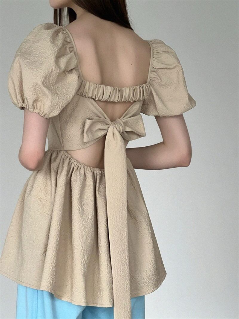 2025年INS 夏新作 INS 新作 韓国風 気質 リボン シャツ ブラウス