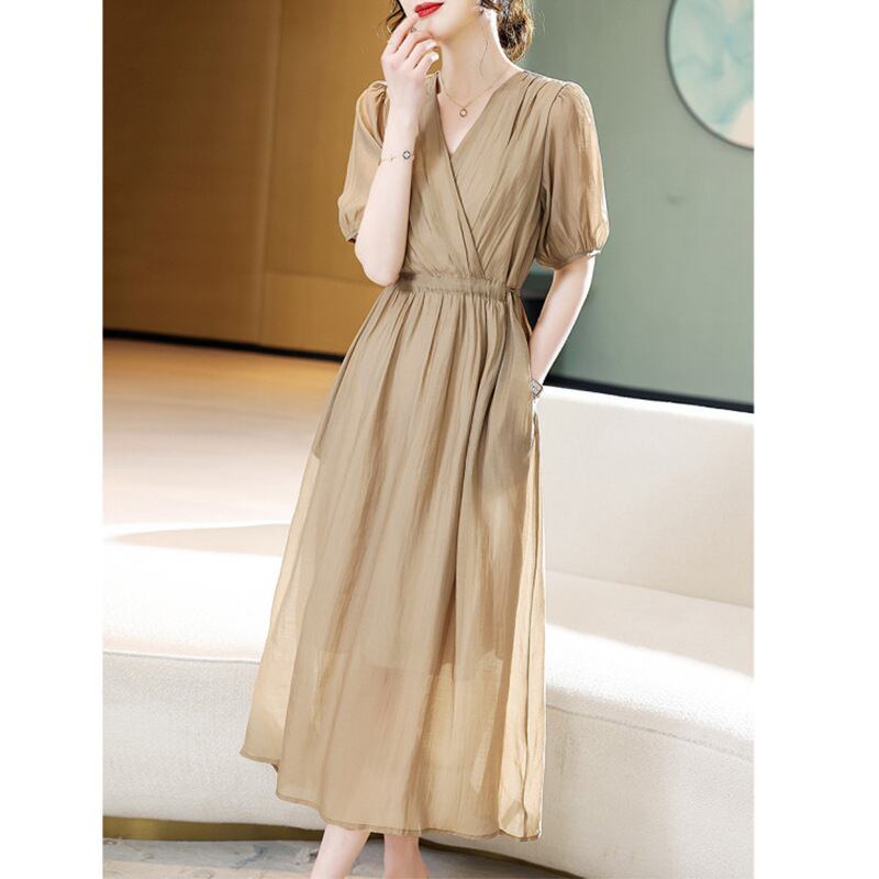 2025年夏新作 ワンピース ロング丈ワンピース レディース Vネック 気質 オシャレ