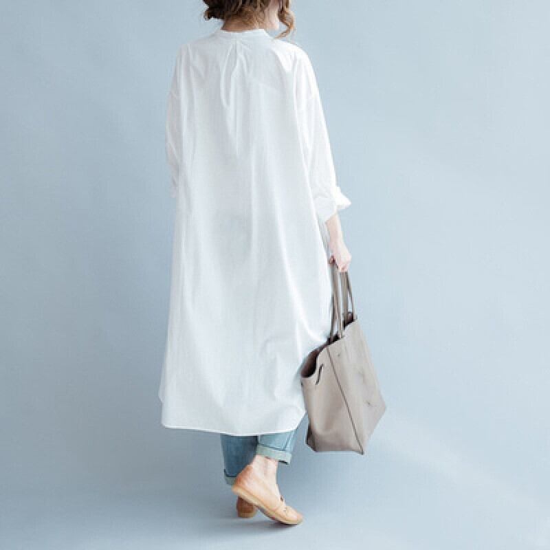 着回し力抜群シャツワンピース。全体的にゆったりとしたデザインで、体型カバーも〇。