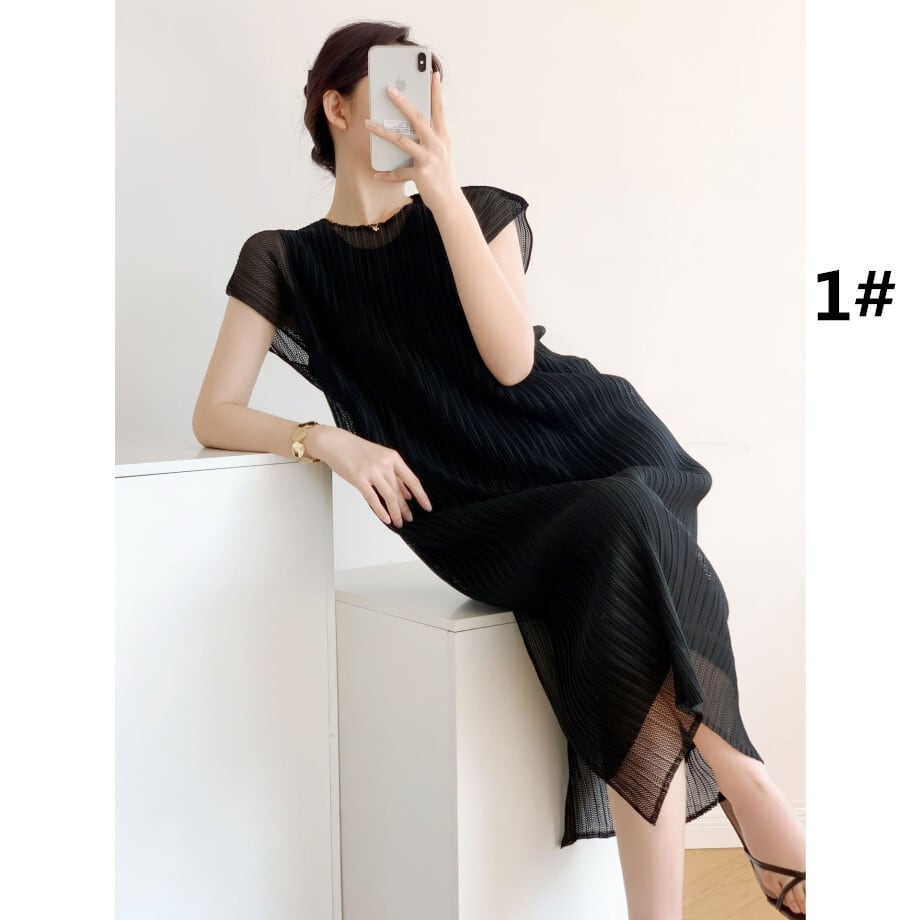 ワンピース レディース ロング丈ワンピース ノースリーブ ラウンドネック メッシュ 通勤 結婚式 二次会