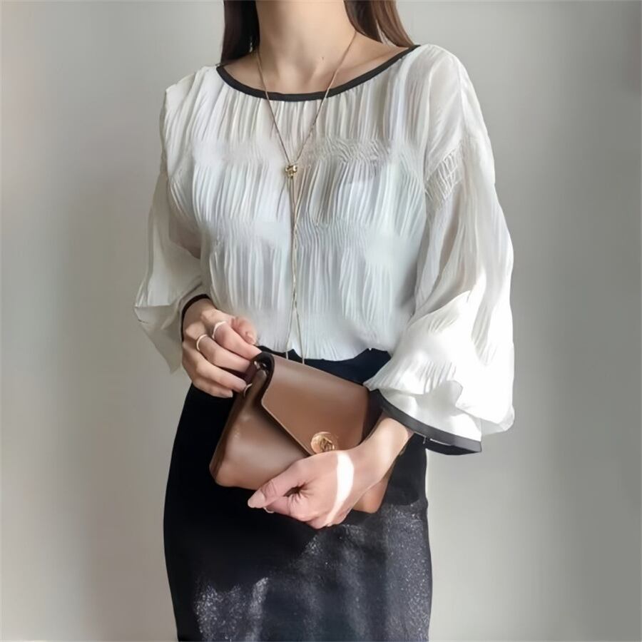 2025新作 トップス シャツ 長袖 ブラウス カジュアル 透明感 レディース おしゃれ 大人可愛い